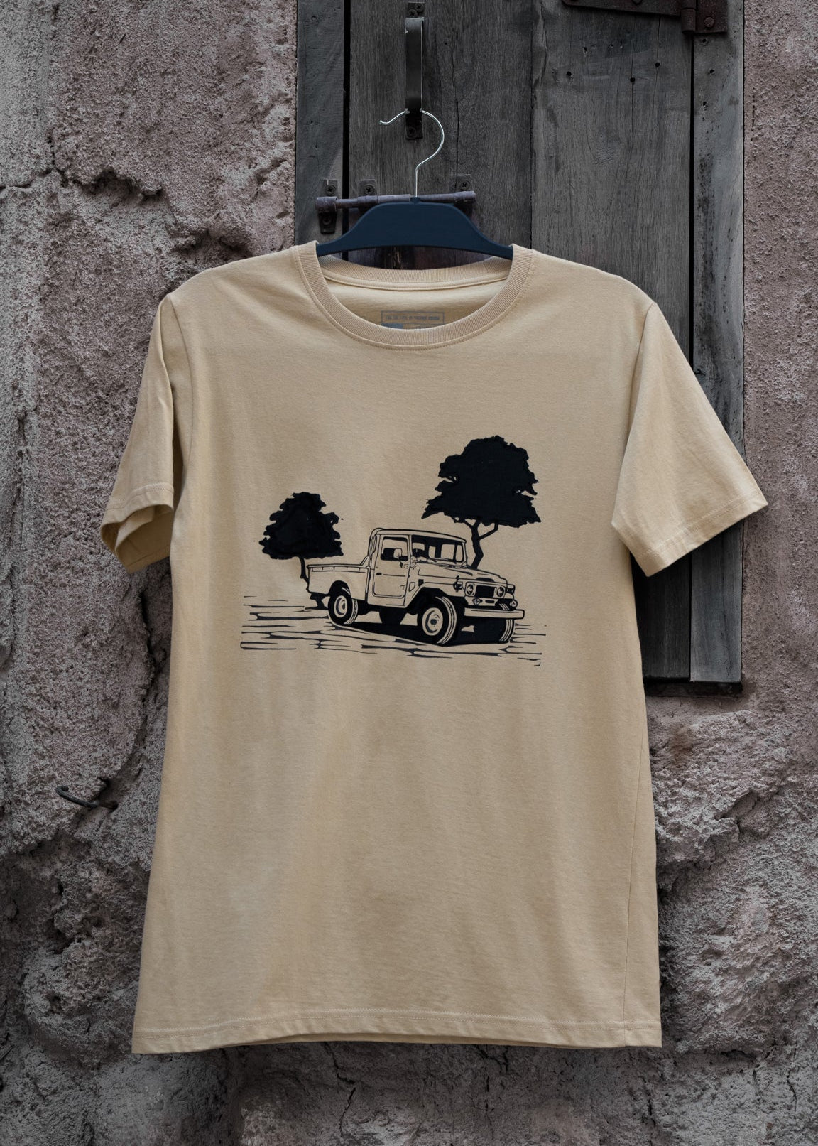 FJ45 Pickup T-Shirt – Beige T-shirt with a detailed شاص classic Landcruiser pickup design Tee One8